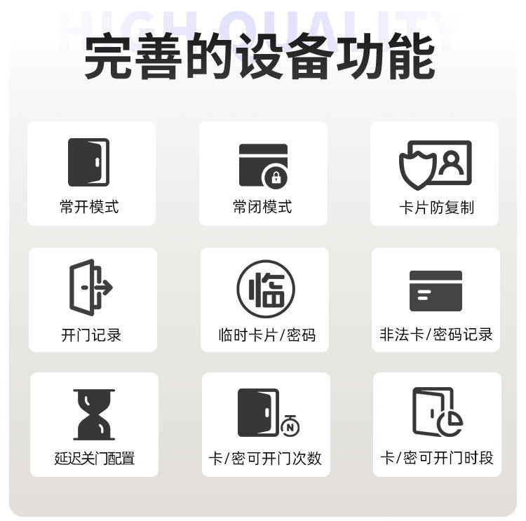 香港岛这款智能门锁提供室内门锁和防盗门锁两种选择,其中室内门锁尺寸为 2806521mm,适配 5050 锁体;防盗门锁尺寸为 3657021mm,适配 6068 锁体,可满足不同场景的安装需求。它采用铝合金一体成型搭配钢化玻璃面板打造,兼具坚固耐用的品质与简洁美观的视觉效果。门锁支持蓝牙无线通讯,解锁方式丰富多样,密码、卡片、蓝牙、钥匙四种方式随心选择,满足不同使用习惯与应急需求。其工作温度范围为 - 20~70℃,能适应多数地区的气候条件,采用碱性电池供电,安装更换便捷,是兼具安全性与实用性的门锁选择。